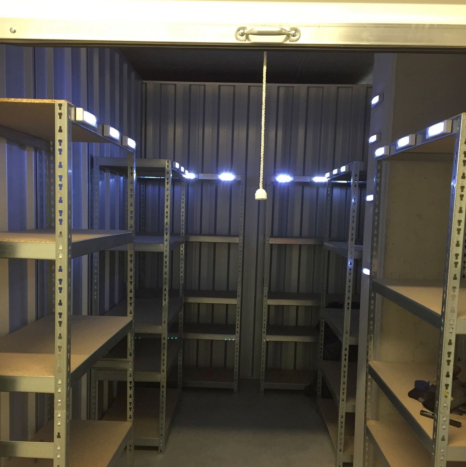 2. Bild: Unser "hauseigener Weihnachtsmann" hat seine Lagerbox mit Regalen und Licht ausgestattet. Dadurch wird der zur Verfügung stehende Platz optimiert und das Lager bleibt übersichtlich und aufgeräumt. Wir beraten Sie gern!